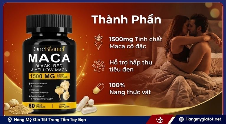 Sản phẩm nổi bật với hàm lượng tinh chất rễ Maca cực cao lên đến 1500mg mỗi viên, gấp nhiều lần các dòng bổ trợ thông thường.